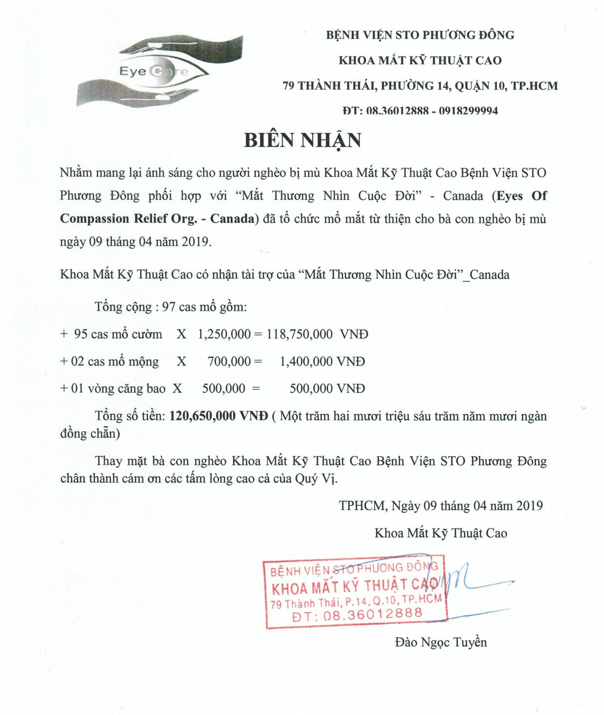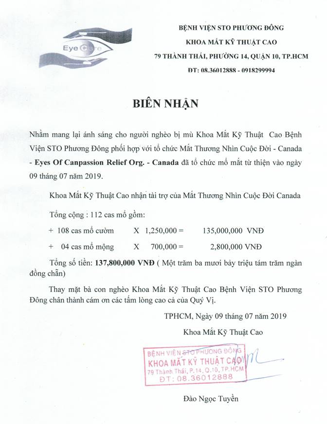 3/ every patient has to pay VN$ 25,000 for a pair of glasses to protect the eyes after surgeries.